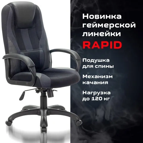 Кресло руководителя Brabix Rapid GM-102 экокожа-ткань, черная-серая, крестовина пластик