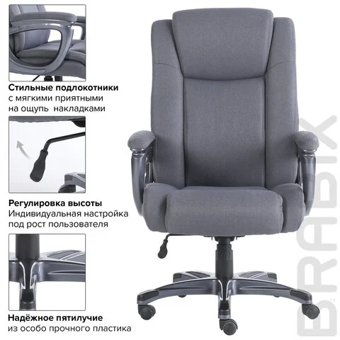 Кресло руководителя Brabix Solid HD-005 ткань, серая, крестовина хром