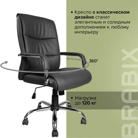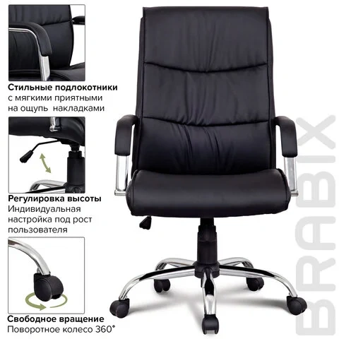 Кресло руководителя Brabix Space EX-508 иск. кожа, черная, крестовина хром