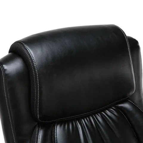 Просторные габариты, высокая спинка с выраженным подголовником, плотная набивка, подлокотники с мягкими накладками обеспечивают отличную эргономику и стильный классический дизайн.