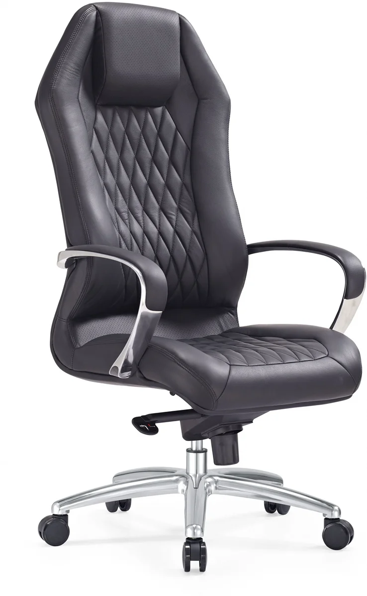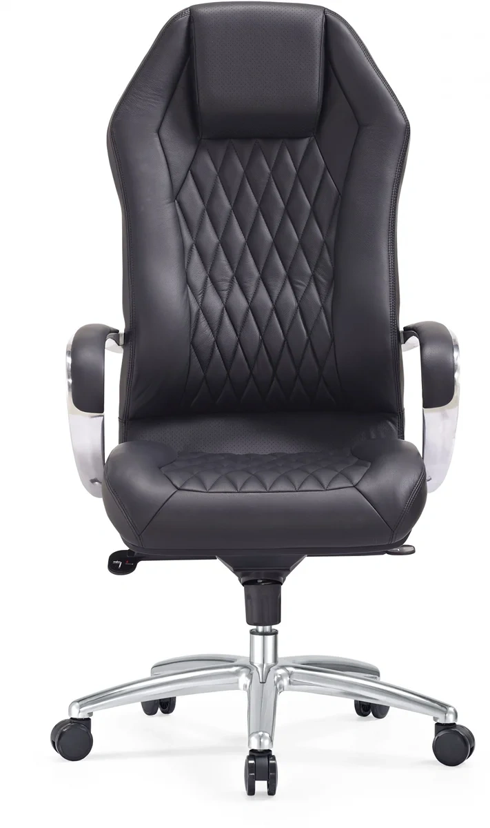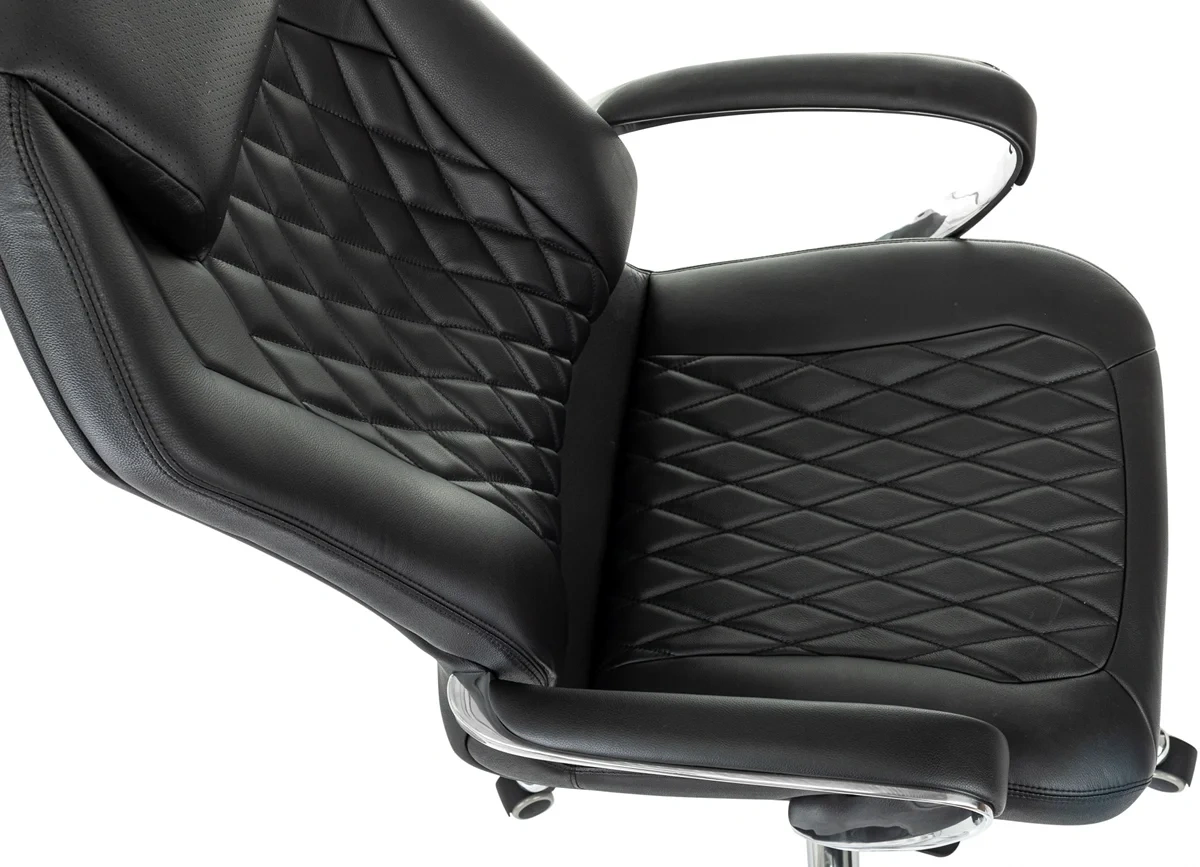Кресло руководителя Бюрократ _Aura черный кожа крестов. алюминий