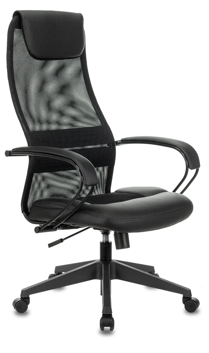 Кресло руководителя Бюрократ CH-608 иск.кожа, черная, сетка черная, крестовина пластик