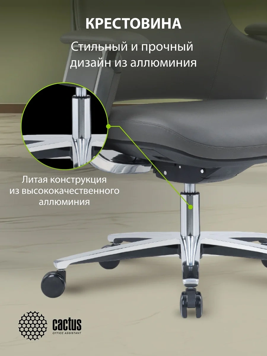 Кресло руководителя Cactus CS-LBK-KYOTO кожа с подголов. крестов. алюминий