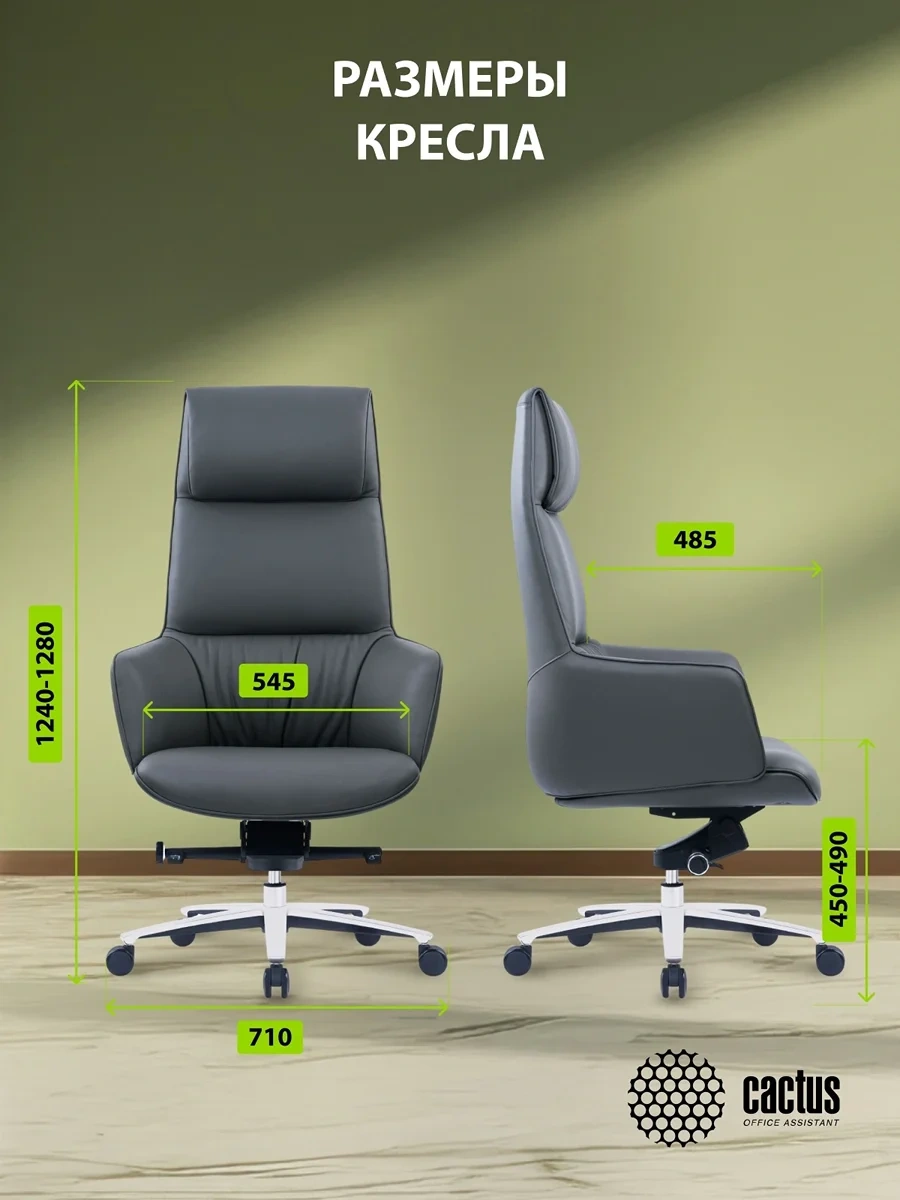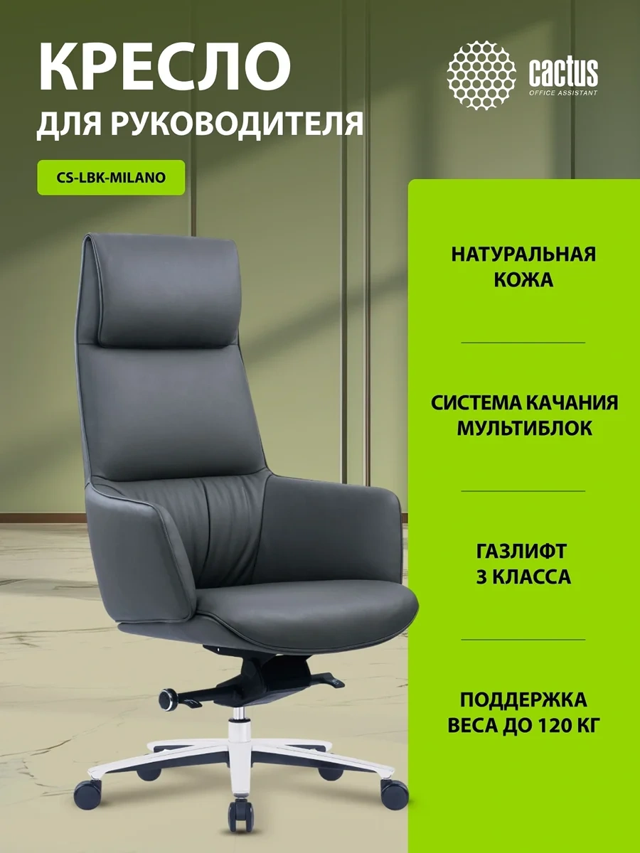 Кресло руководителя Cactus CS-LBK-MILANO кожа с подголов. крестов. алюминий