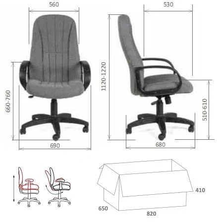| Высота от пола до верхнего края подлокотника, мин, мм | 670 |
