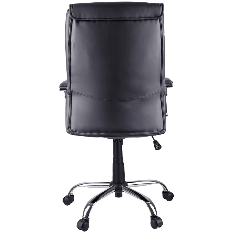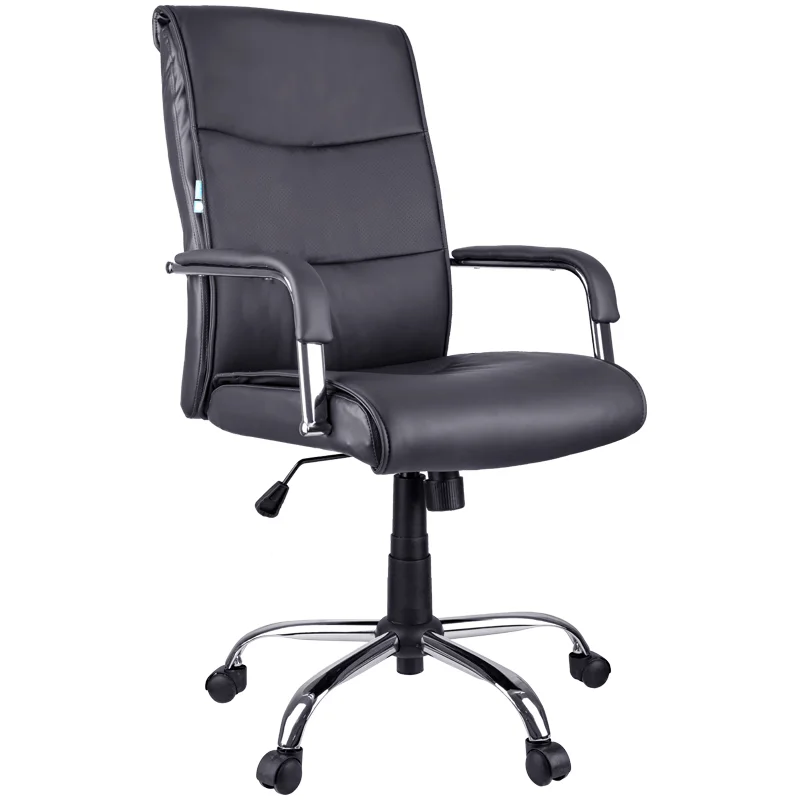 Классические прямые формы удачно оттеняются хромированными элементами и вставками из перфорированной экокожи. Механизм качания с возможностью фиксации кресла в рабочем положении. Каркас – немонолитный, материал набивки – вспененный полиуретан, крестовина – хромированный металл. Гарантийный срок – 12 месяцев.