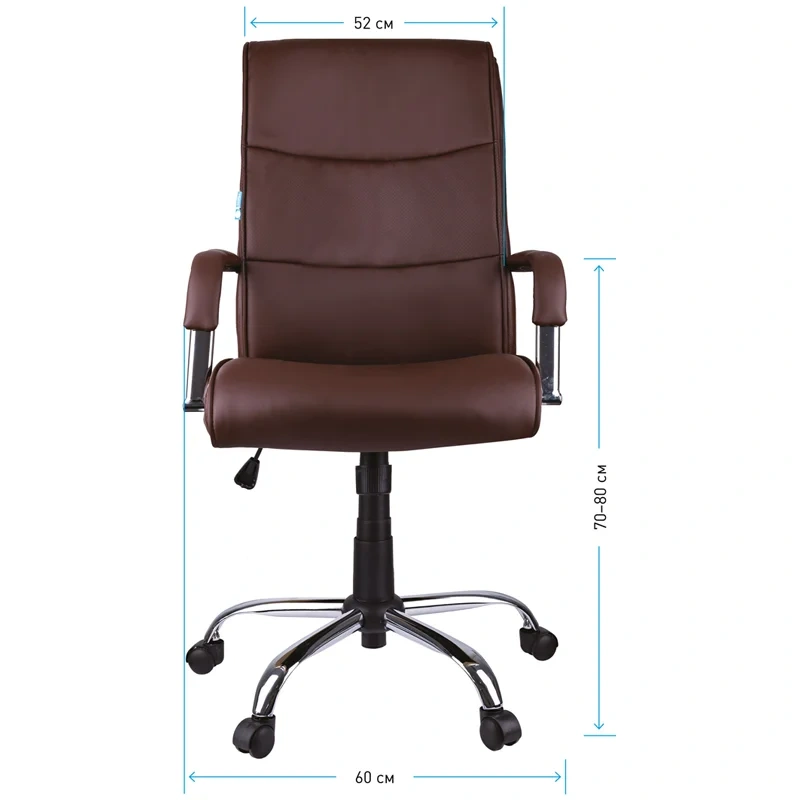 Классические прямые формы удачно оттеняются хромированными элементами и вставками из перфорированной экокожи. Механизм качания с возможностью фиксации кресла в рабочем положении. Каркас – немонолитный, материал набивки – вспененный полиуретан, крестовина – хромированный металл. Гарантийный срок – 12 месяцев.