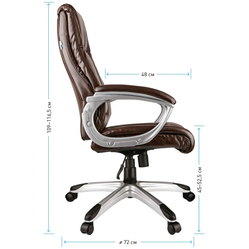 Кресло руководителя, выполненное по всем канонам классики: строгие линии отстрочки, выраженный подголовник и поясничная поддержка, мягкие подлокотники. Механизм качания с возможностью фиксации кресла в рабочем положении. Каркас – немонолитный, материал набивки – вспененный полиуретан, крестовина и подлокотники – серебристый пластик. Гарантийный срок – 12 месяцев.