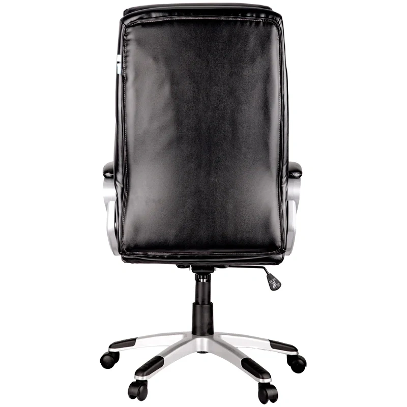 Максимальная нагрузка составляет 120 кг. Газпатрон 4 категории по стандарту Germany DIN 4550. Каркас – немонолитный, материал набивки – вспененный полиуретан, крестовина – серебристый пластик, материал обивки – экокожа чёрного цвета. Модель имеет пластиковые подлокотники с накладками из экокожи. Механизм качания с возможностью фиксации кресла в рабочем положении. Гарантийный срок – 24 месяца.