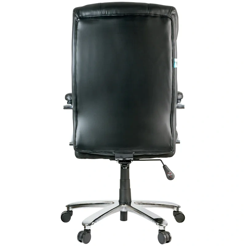 Газпатрон 4 категории по стандарту Germany DIN 4550. Каркас – немонолитный, материал набивки – вспененный полиуретан, крестовина – хромированный металл, материал обивки – экокожа чёрного цвета. Модель имеет металлические хромированные подлокотники с накладками из экокожи. Механизм качания с возможностью фиксации кресла в рабочем положении. Гарантийный срок – 12 месяцев.