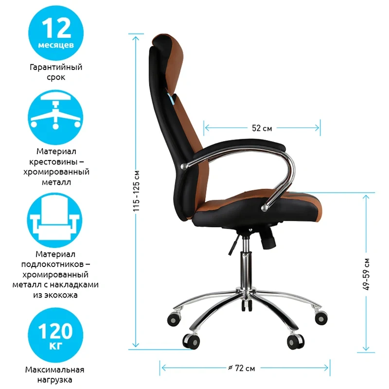 | Подлокотники | металлические хромированные с мягкими накладками, обитыми экокожей |