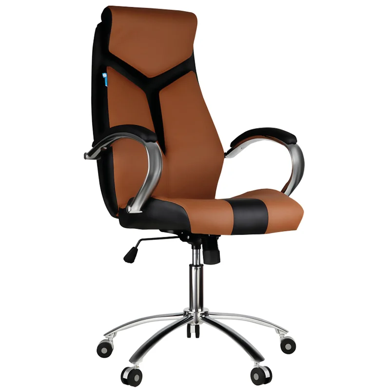 Кресло руководителя Helmi HL-E01 'Inari', экокожа черная/коричневая, хром