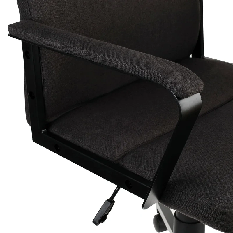 Металлические подлокотники и крестовина придают простому на первый взгляд креслу стильный и современный вид.