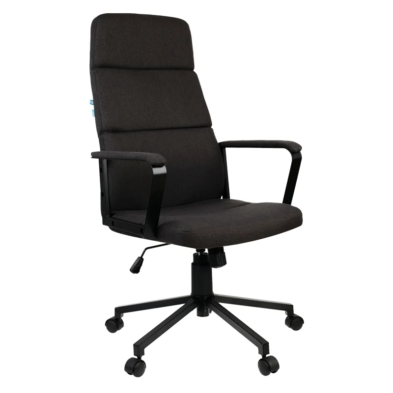 Эргономичная форма спинки и сиденья в сочетании с плотной набивкой из поролона обеспечивает комфорт в процессе эксплуатации. Обивка выполнена из высококачественной мебельной ткани. Это один из лучших вариантов среди кресел руководителя базового уровня.