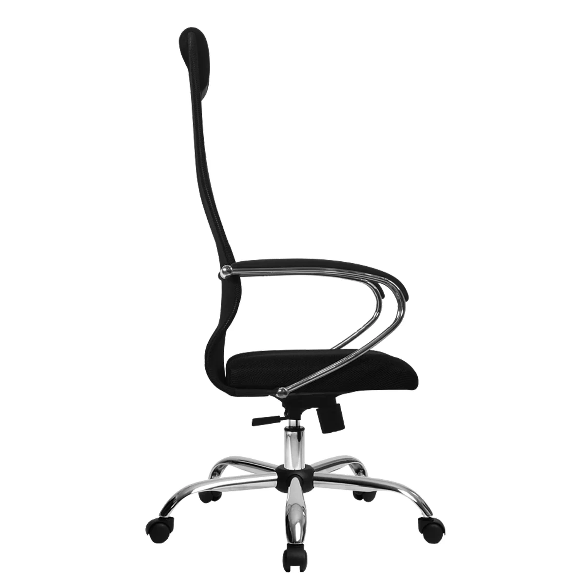 Высокая замкнутая сверху спинка кресла. Удобный комфортный подголовник. Мягкое комфортное объемное сиденье. Уникальная форма передней части сиденья исключает сдавливание сосудов ног, сохраняя ощущение легкости в ногах. Сверхпрочный стальной каркас спинки с износостойким полимерным покрытием черного цвета. Стальные классические подлокотники с хромированным покрытием. Механизм качания топ-ган дает возможность отклоняться в кресле, настраивать жесткость качания и зафиксировать его в рабочем (вертикальном) положении. Регулировка высоты сиденья; Экологически чистые обивочные материалы, обладающие высокой степенью воздухопроницаемости, с повышенной износостойкостью и презентабельным внешним видом. Материалы обивки позволяют телу «дышать», обеспечивая свободную циркуляцию воздуха. Спинка: ткань-сетка мягкая, сиденье и подголовник: обивочная сетчатая ткань. Пятилучье металлическое хромированное. Гарантийный срок – 24 месяца.