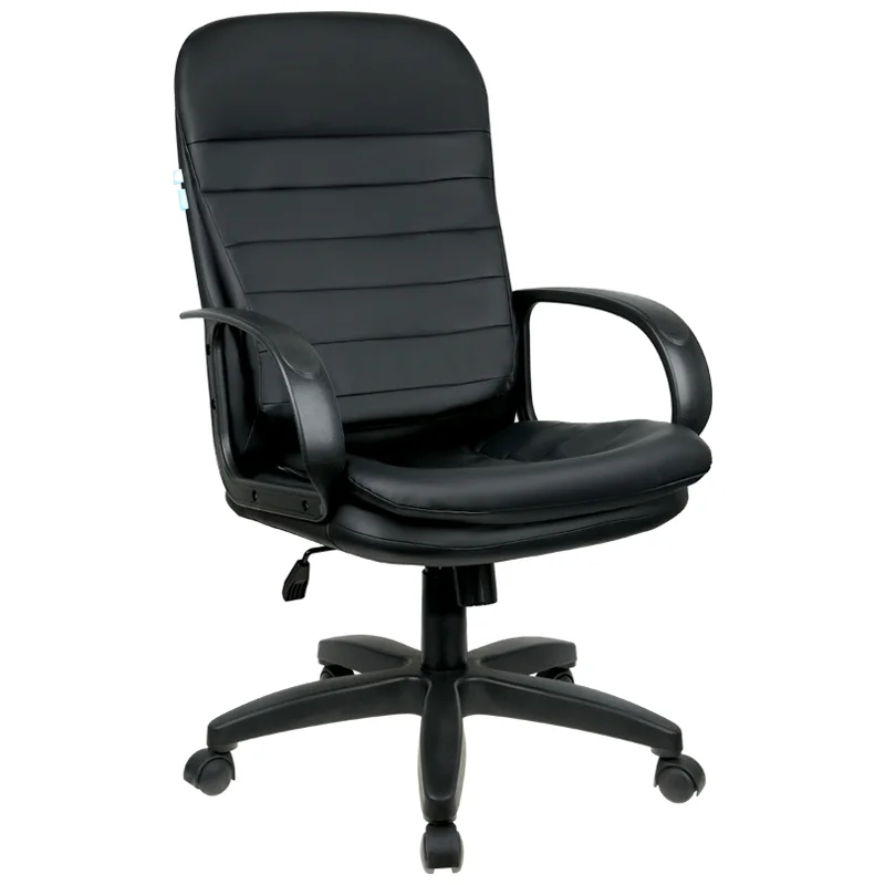 Обивка из практичной экокожи и дизайн в классическом стиле создают солидный образ руководительского кресла.