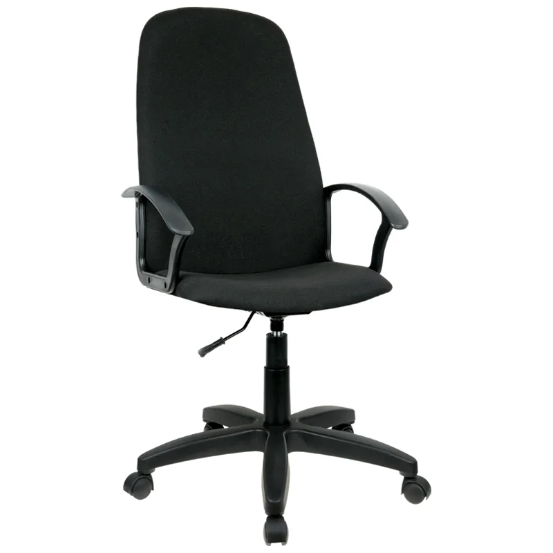 Максимальная нагрузка составляет 100 кг. Газпатрон 2 категории по стандарту Germany DIN 4550. Каркас – немонолитный, материал набивки – вспененный полиуретан, крестовина – пластик, подлокотники – пластик, материал обивки – практичная и износостойкая ткань чёрного цвета. Регулировка по высоте позволяет настроить сиденье под конкретного пользователя. Гарантийный срок –24 месяца.