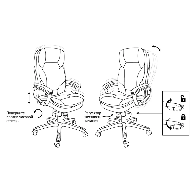 Механизм качания – «мультиблок» повышенной комфортности с возможностью фиксации кресла в нескольких положениях. Гарантийный срок – 12 месяцев.