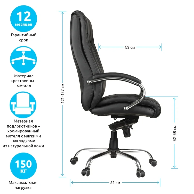 | Подлокотники | металлические хромированные с мягкими накладками, обитыми натуральной кожей |