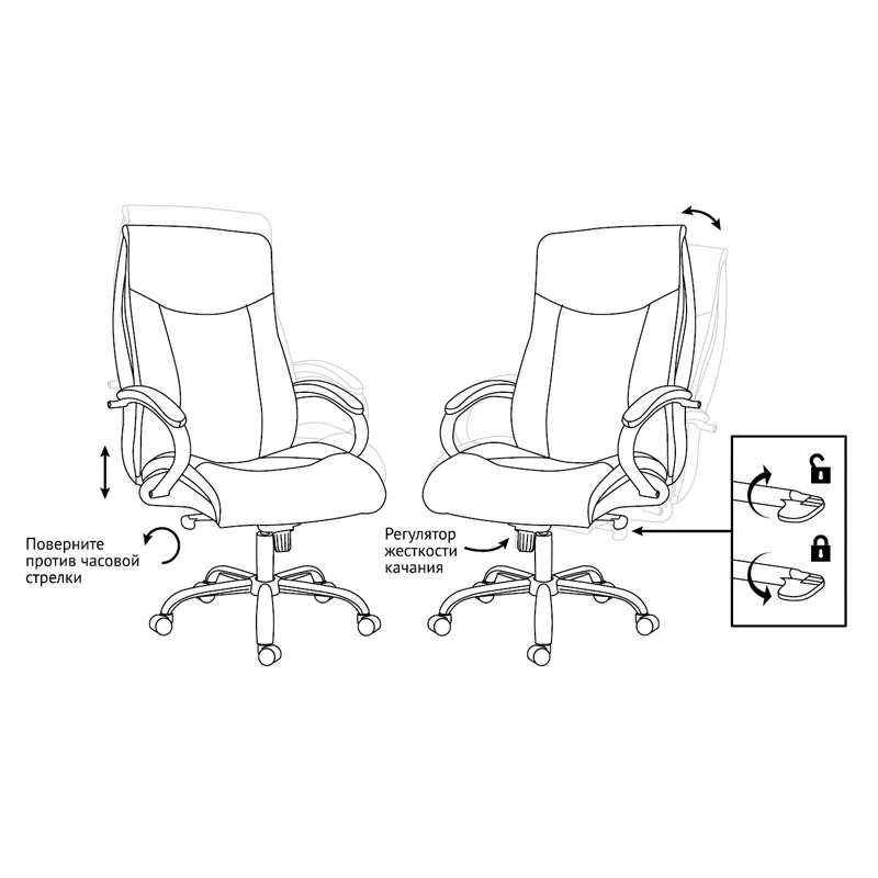 Механизм качания – механизм качания с регулировкой под вес и фиксацией в вертикальном положении. Гарантийный срок – 12 месяцев.