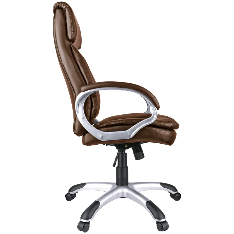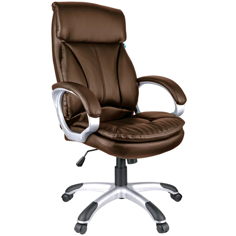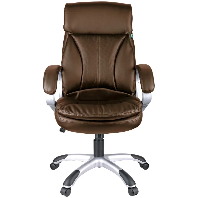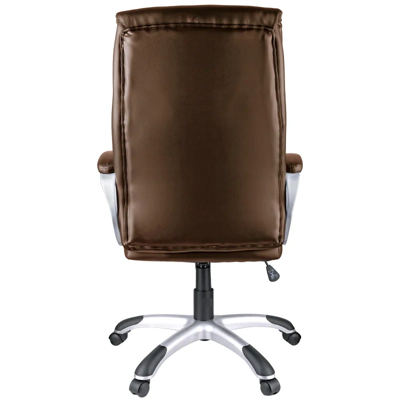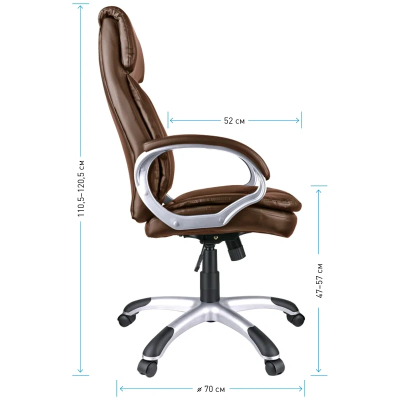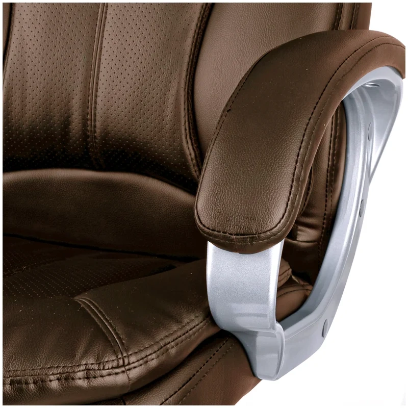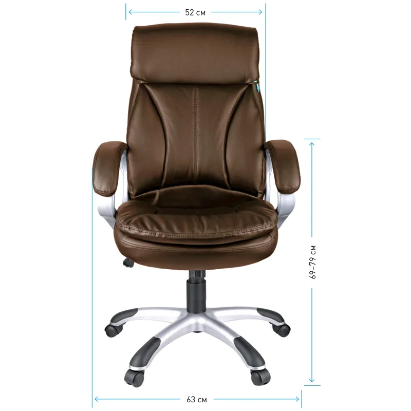 Большое и удобное кресло со свежим дизайном и выверенной эргономикой. Каркас – немонолитный, материал набивки – вспененный полиуретан, крестовина – пластик серебристого цвета, материал обивки – экокожа коричневого цвета. Модель имеет пластиковые подлокотники с мягкими накладками из экокожи. Гарантийный срок – 12 месяцев.
