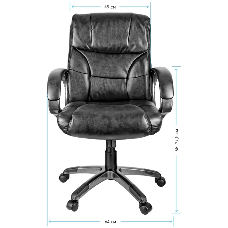 Кресло компьютерное для руководителя Helmi HL-E08 Receipt из экокожи чёрного цвета сочетает в себе компактность и превосходное качество. Максимальная нагрузка составляет 120 кг. Газпатрон 2 категории по стандарту Germany DIN 4550.