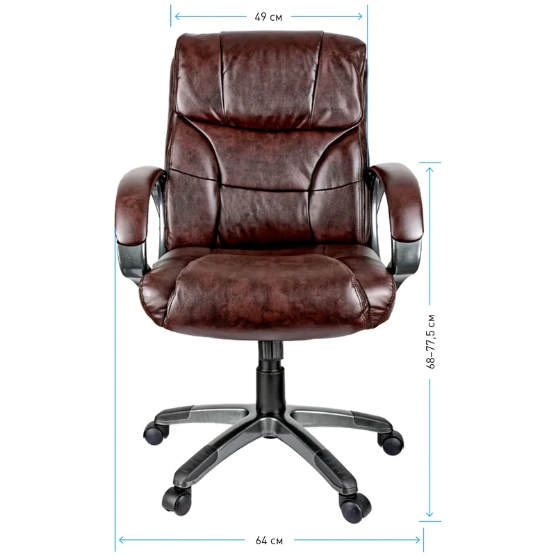 Кресло компьютерное для руководителя Helmi HL-E08 Receipt из экокожи коричневого цвета сочетает в себе компактность и превосходное качество. Максимальная нагрузка составляет 120 кг. Газпатрон 2 категории по стандарту Germany DIN 4550.