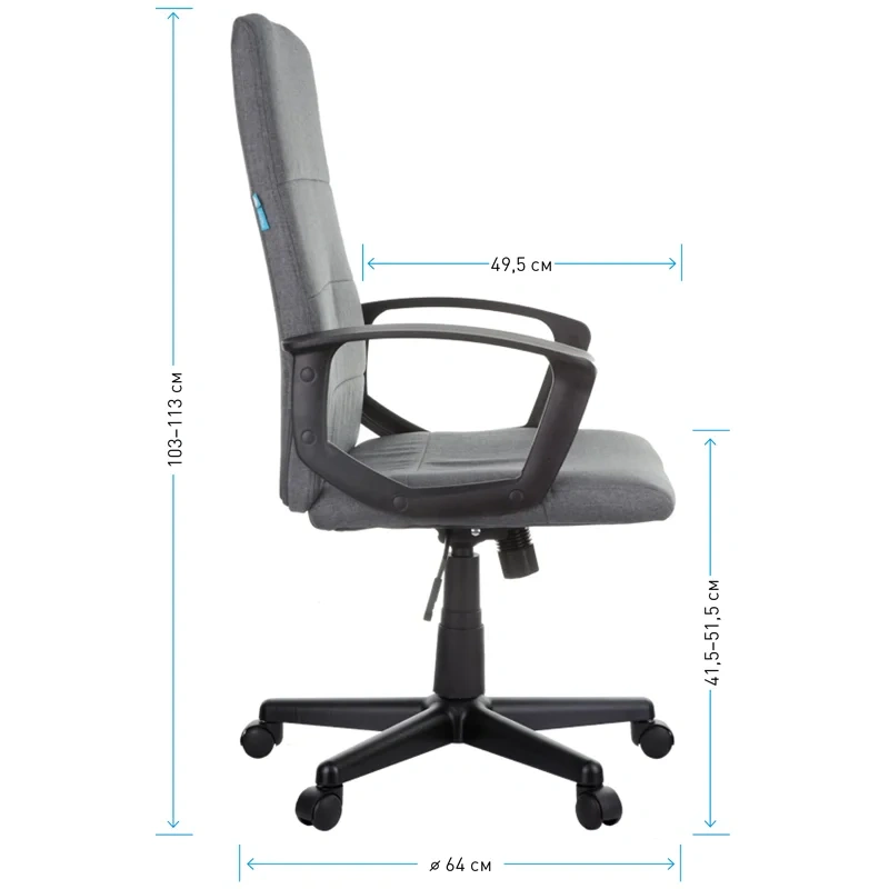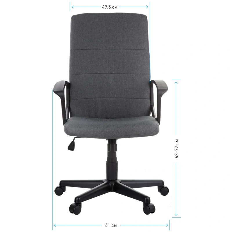 Каркас – немонолитный, материал набивки – вспененный полиуретан, крестовина – пластик, материал обивки – серая ткань. Гарантийный срок – 12 месяцев.