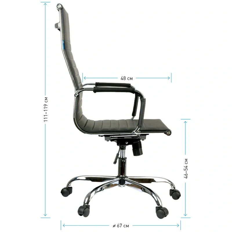 Ультратонкое кресло в стиле Hi-Tech на монолитном анатомичном каркасе, выделяющееся броскими хромированными элементами и стильной отстрочкой. Механизм качания с возможностью фиксации кресла в рабочем положении. Каркас – монолитный, материал набивки – вспененный полиуретан, подлокотники – хромированный металл с накладками из экокожи, крестовина – хромированный металл. Гарантийный срок – 12 месяцев.