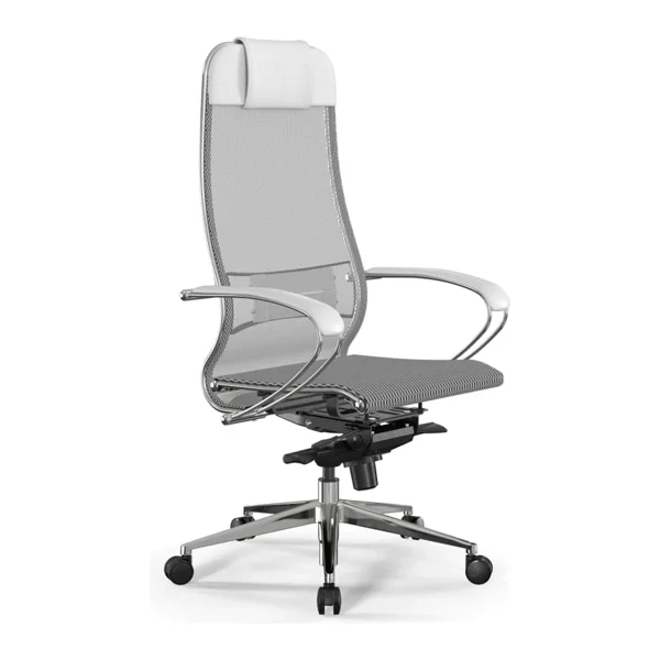Кресло руководителя Метта L1-1K TS белый, ткань/сетка, крестовина хром
