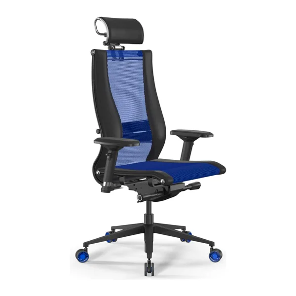 Кресло руководителя Метта L2-16D TS+Infinity синий/черный, ткань/сетка, крестовина хром