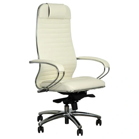 Кресло руководителя Метта Samurai KL-1.04, экокожа, бежевая, крестовина хром