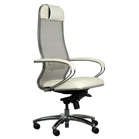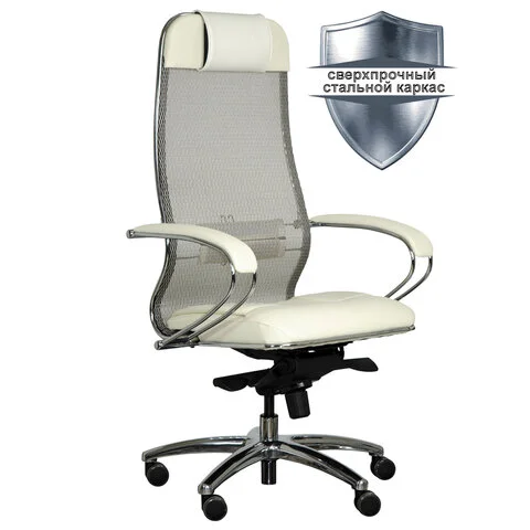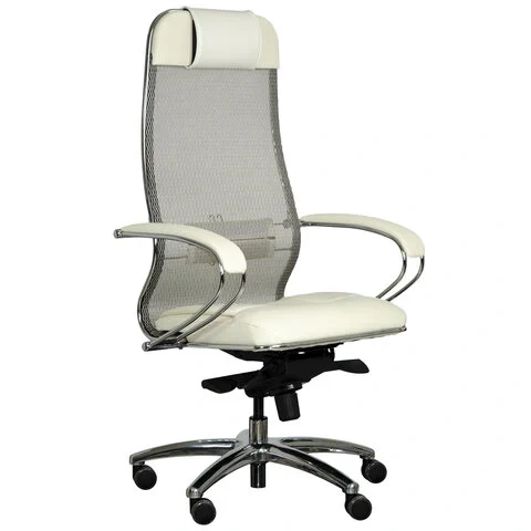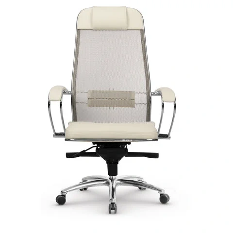 Кресло руководителя Метта Samurai SL-1.04, ткань-сетка, бежевая, крестовина хром