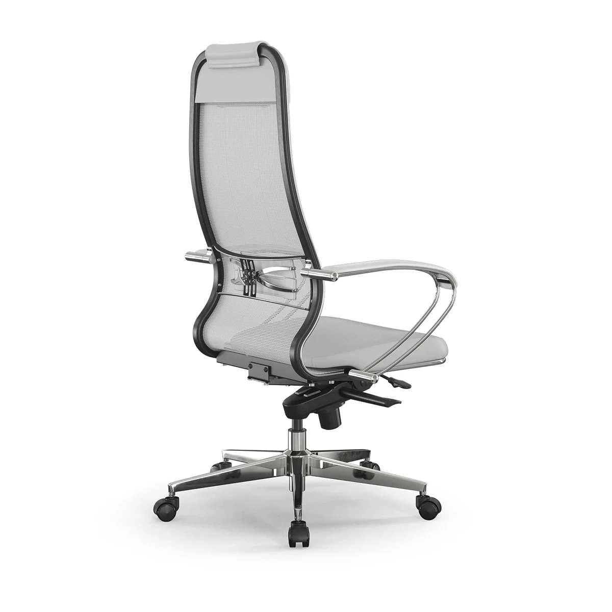 Кресло руководителя Метта Samurai Comfort S Infinity, ткань-сетка/экокожа, жемчужно-белая, крестовина хром
