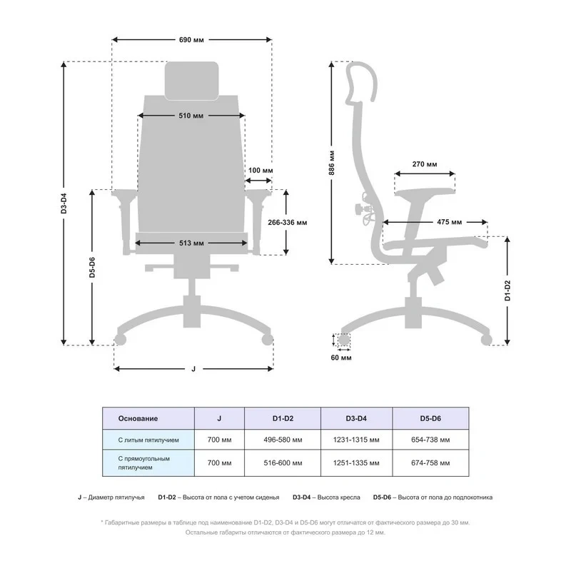 Регулировка сиденья по высоте - ход штока газлифта 85 мм.