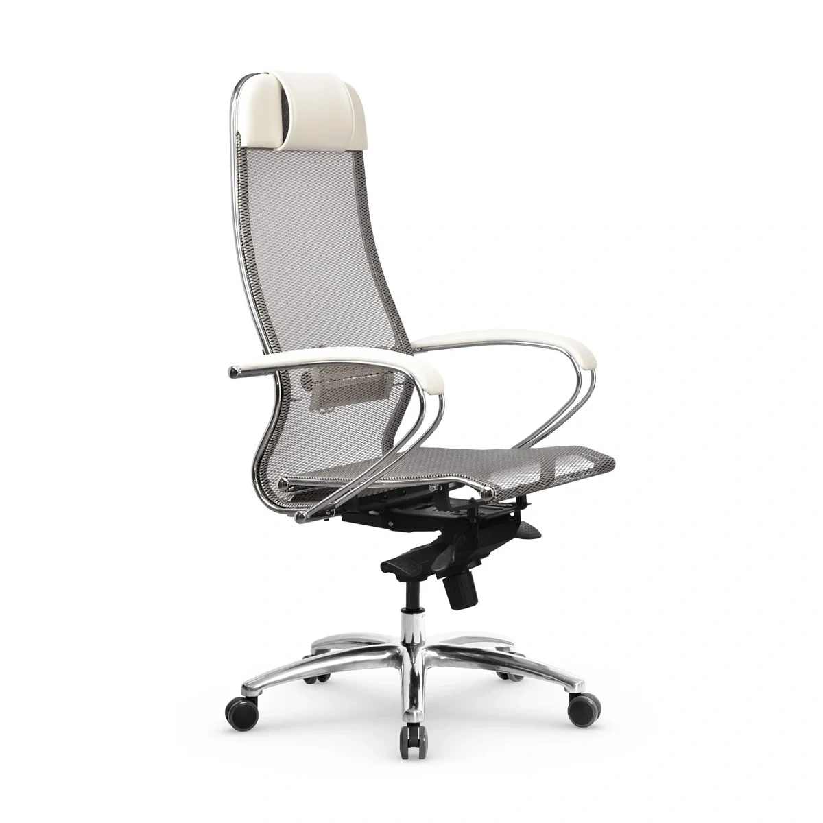 Кресло руководителя Метта Samurai S-1.04 MPES, ткань-сетка/экокожа, белая, крестовина хром