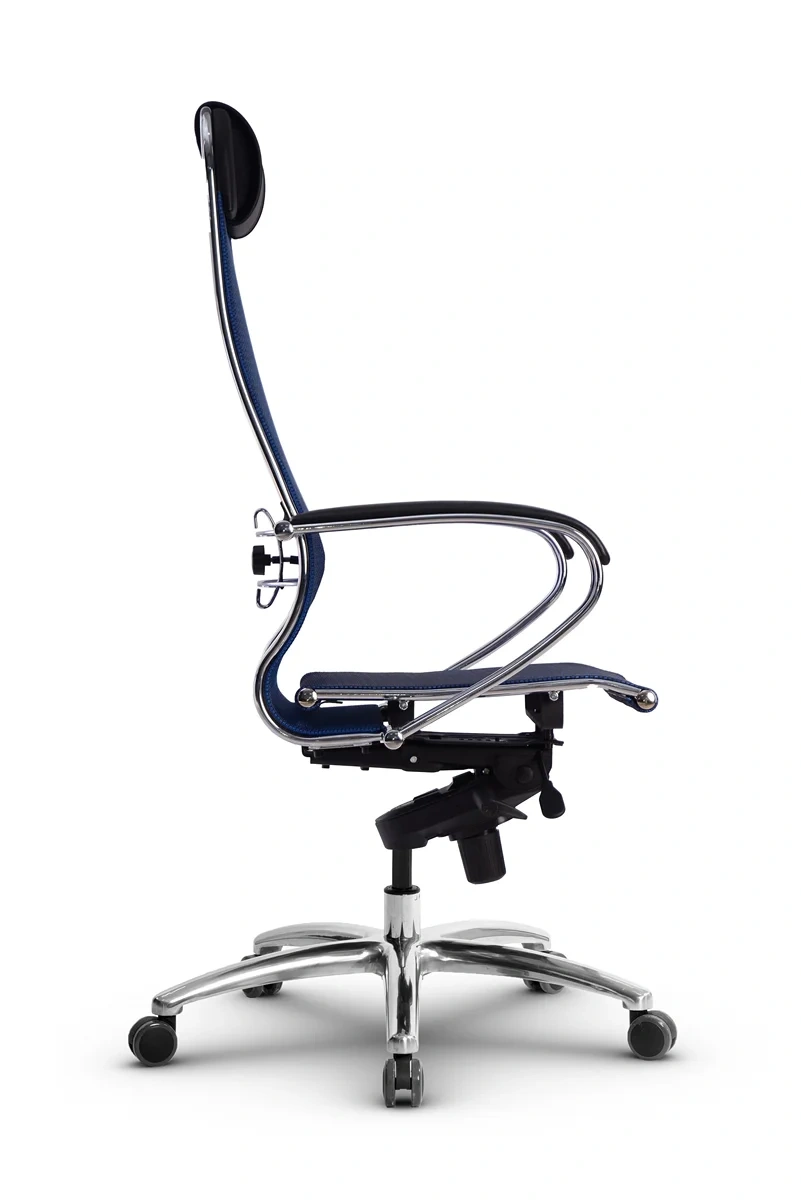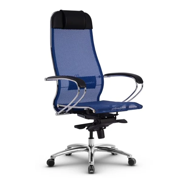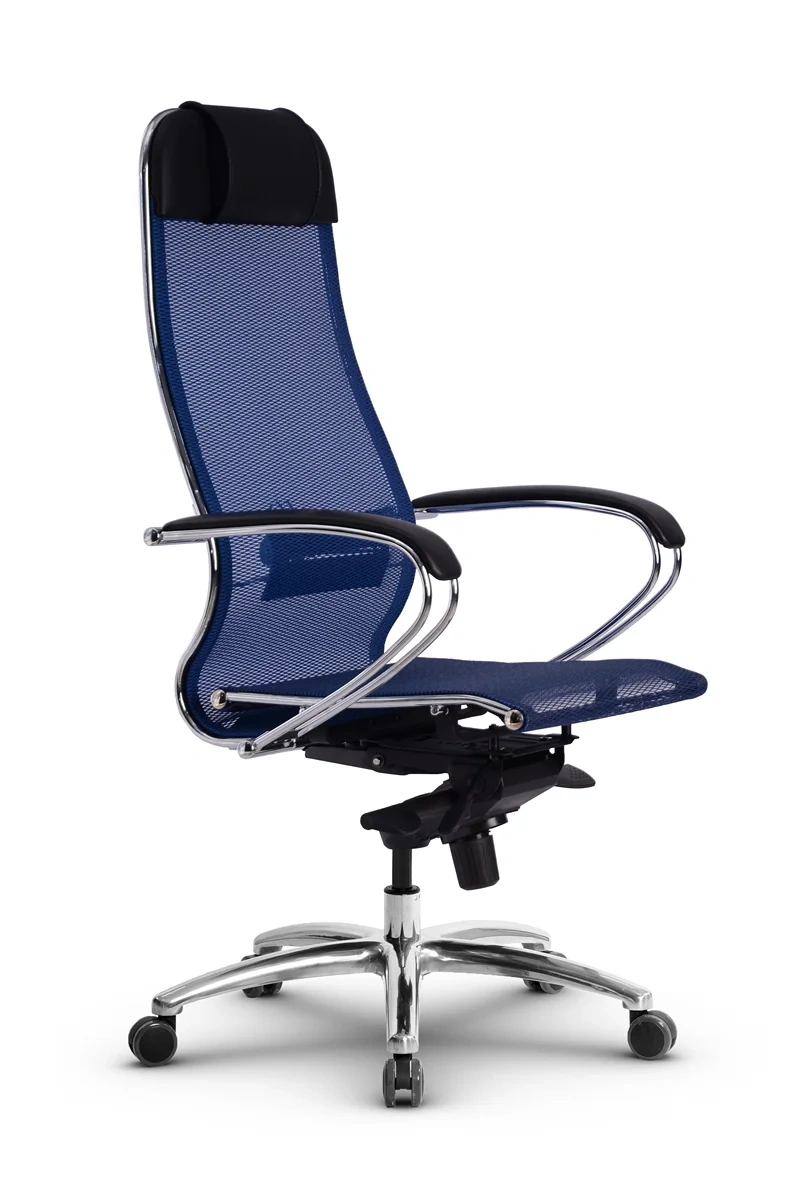 Кресло руководителя Метта Samurai S-1.04 MPES, ткань-сетка/экокожа, черная-синяя, крестовина хром