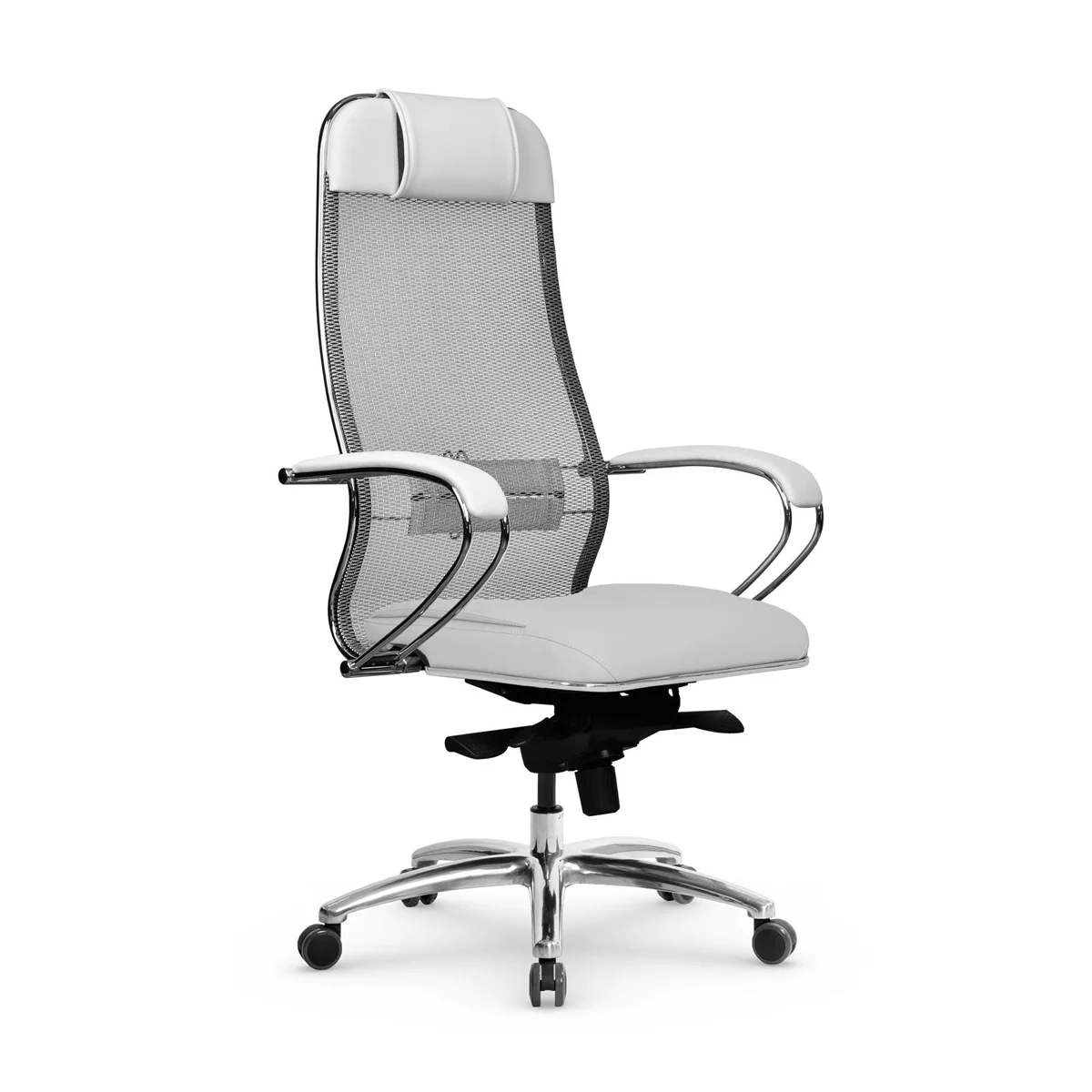 Кресло руководителя Метта Samurai SL-1.04 MPES, ткань-сетка/экокожа, белая, крестовина хром