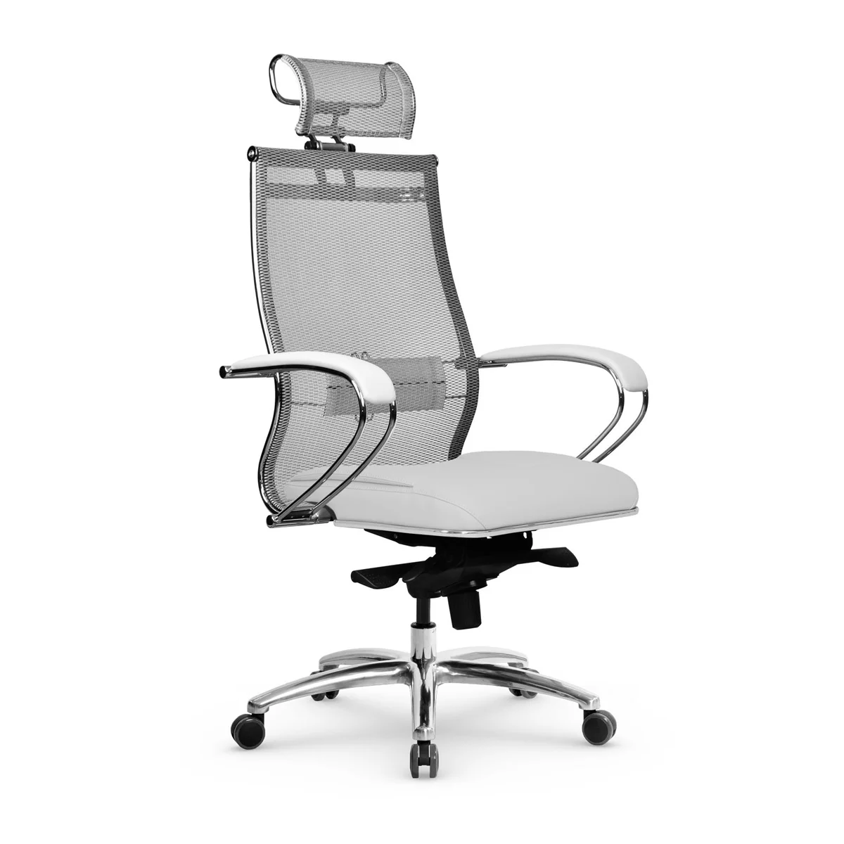 Кресло руководителя Метта Samurai SL-2.05 MPES, ткань-сетка/экокожа, белая, крестовина хром