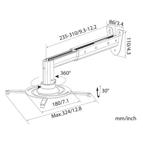 Гарантией долговечности эксплуатации кронштейна является использование в качестве материала высококачественной стали. Кронштейн выполнен в приятном серебристом цвете, позволяет установить проектор, вес которого не превышает 10 кг.