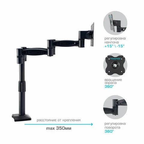 Гибкие настройки кронштейна дают возможность максимально комфортно устроить свое рабочее место.