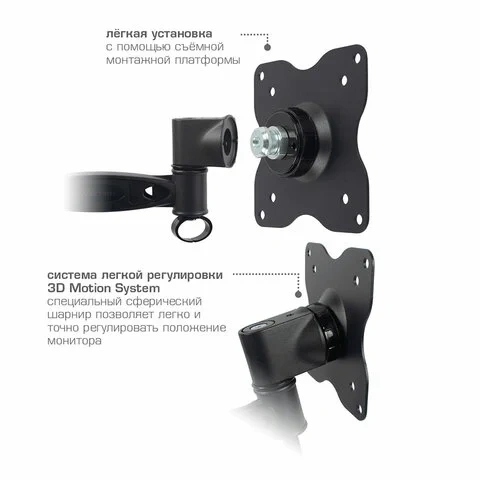 Конструкция кронштейна для монитора Kromax OFFICE-1 дает возможность изменять положение монитора минимальным усилием руки. Монитор можно поворачивать, наклонять и вращать практически в любую сторону. Кронштейн также дает возможность настроить положение монитора по высоте. Гибкие настройки кронштейна для монитора дают возможность максимально комфортно устроить свое рабочее место.
