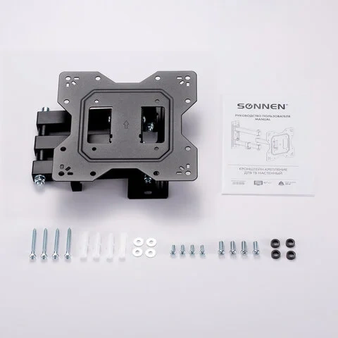 В комплект поставки кронштейна SONNEN входят все необходимые крепления для настенной инсталляции и подробная инструкция. Это поможет сделать процесс монтажа легким и быстрым.