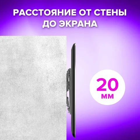 Расстояние от стены - 20 мм, благодаря чему кронштейн не заметен на стене. Это позволяет ему прекрасно вписываться в любой интерьер и экономит пространство.
