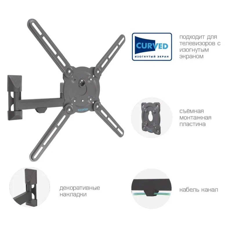 Кронштейн Kromax ATLANTIS-15, TV 26-55, настенный, наклонно-поворотный,чер
