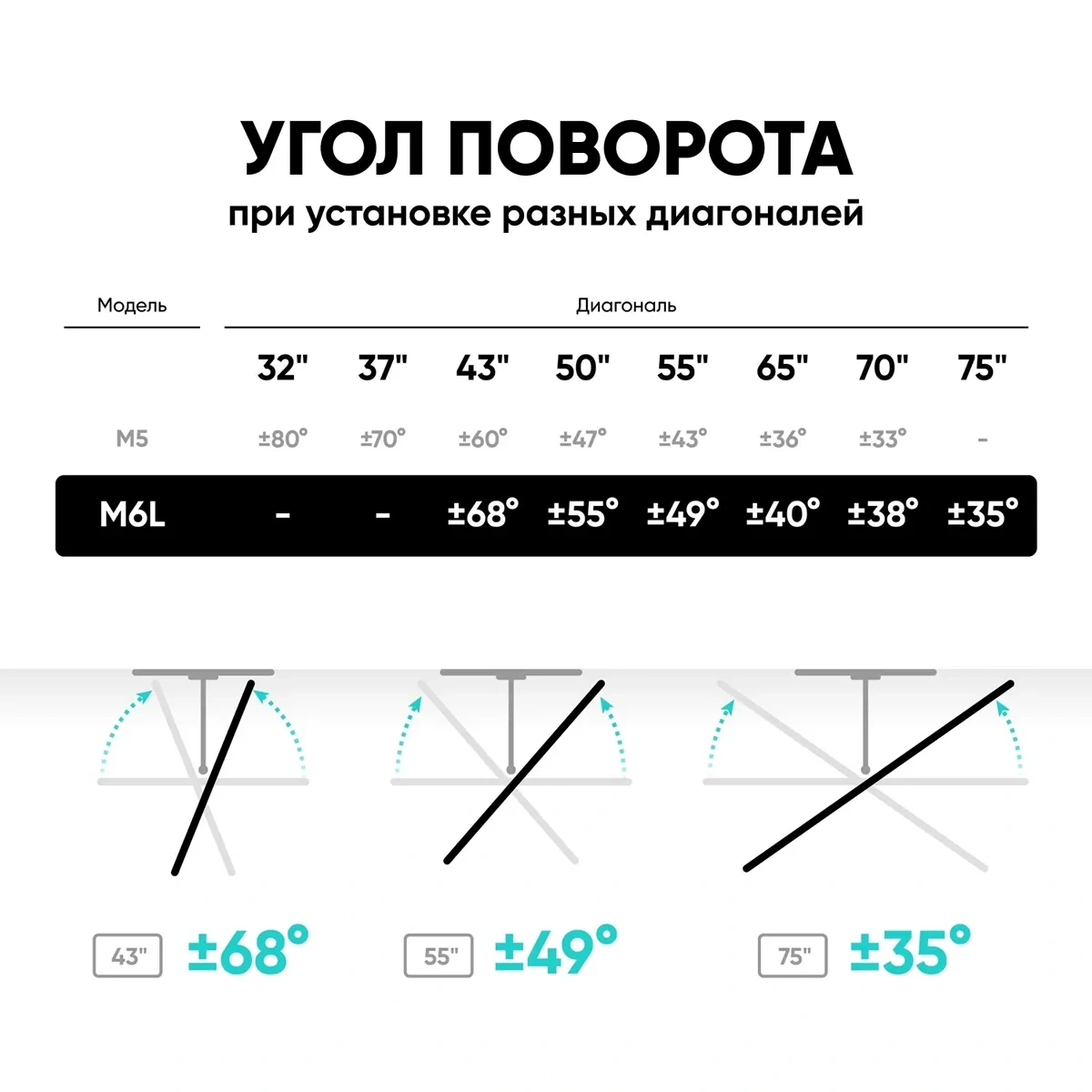 Кронштейн Onkron M6L наклонно-поворотный черный