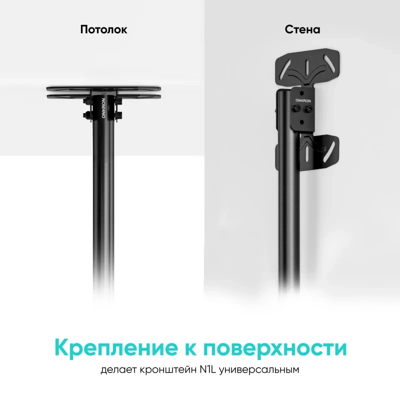 Потолочный кронштейн для телевизора Onkron N1L предназначен для панелей с диагональю экрана от 32 до 70 дюймов. Максимальный выдерживаемый вес составляет 68.2 кг, что делает кронштейн подходящим для средних и больших