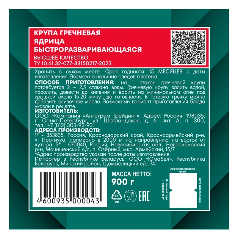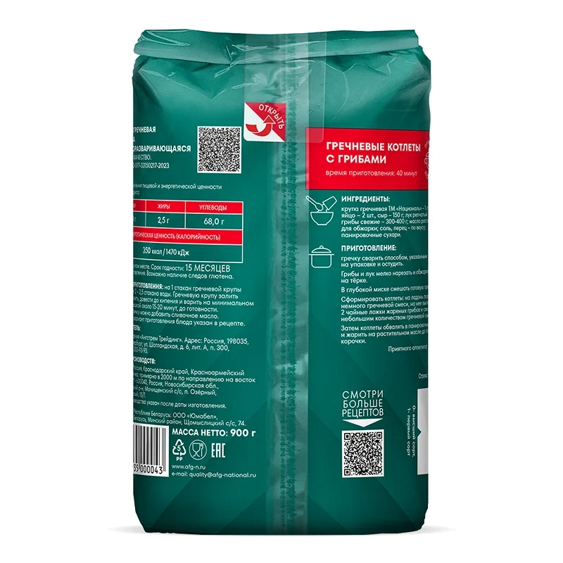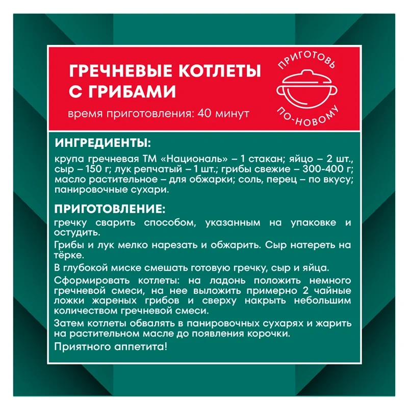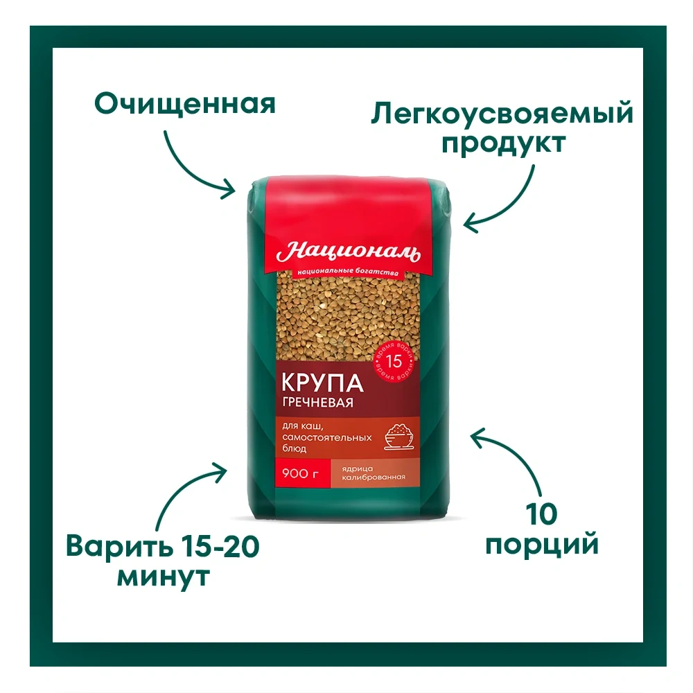 Крупа гречневая ядрица ТМ Националь — продукт, сочетающий отличное качество с невысокой ценой. Сырьё для производства этого продукта закупается у лучших поставщиков. Высокое качество сырья позволяет не проводить дополнительную обработку крупы, что значительно снижает себестоимость продукта.
