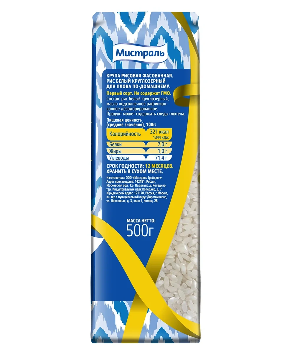 Рис Мистраль для плова по-домашнему круглозерный, 500г