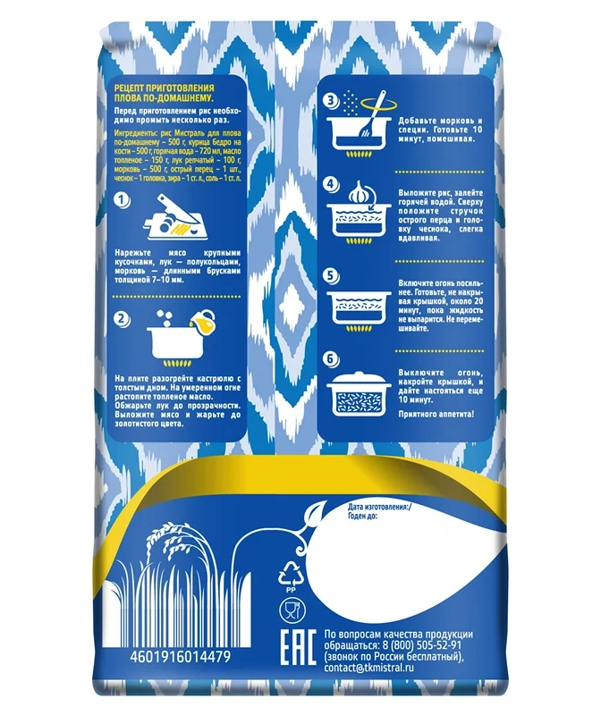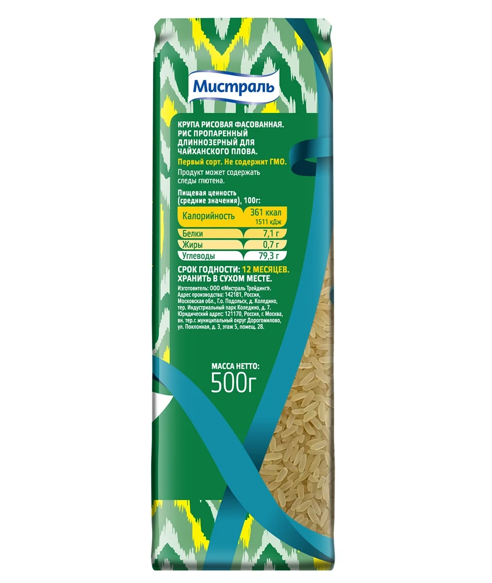 Рис Мистраль для плова чайханского пропаренный, 500г